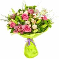 Букет «Аромат весны» носит свое название не зря. Тут представлены все цветы, запахи которых ассоциируются с весной в головах людей. Лилии, одноголовые розы, кустовые розы, орхидеи и хризантемы сочетаются в одновременно ярком и нежном букете. Композиция означает преданность и уважение, подходит друзьям, любимым для выражения нежных чувств или извинений.