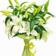 Элегантный и благородный букет из белоснежных лилий всегда актуален и придется как нельзя кстати к любому праздничному мероприятию.
